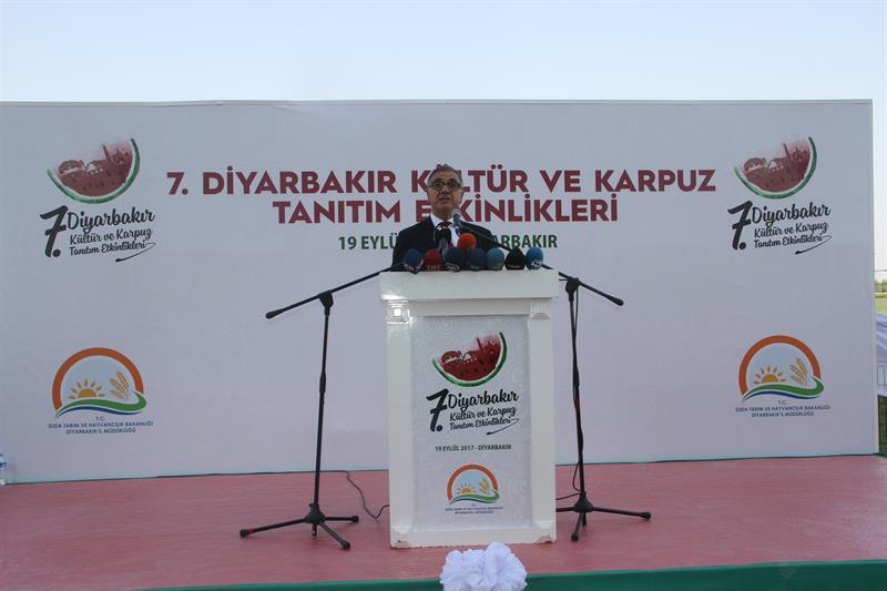 Bugün bütün bu boyutların yanı sıra Diyarbakır'ın tarımsal altyapısını Türkiye'nin tarım perspektifinde ortaya koyduğu zenginliği hem aktaran hem de sembolize eden meşhur Diyarbakır karpuzunun tanıtımında buluşmadayız. Gerçekte kültürümüzün çok önemli bir yanı ve ortak değerlerimizin çok güzel bir tadı olan Diyarbakır karpuzu üzerinden, Diyarbakır'ın tüm güzelliklerini anlamak ve yaşamak adına bunun önemli bir fırsat olduğunu düşünüyorum.
