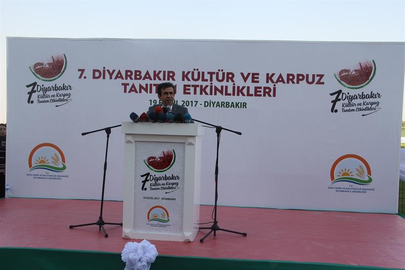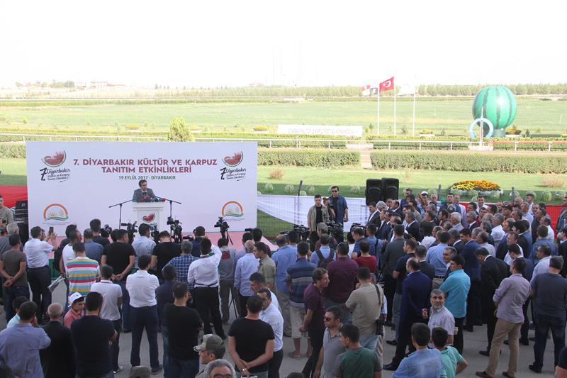 Burada faaliyet gösteren çiftçilerimiz el emeğiyle eski usulde yetiştirmek koşuluyla Diyarbakır karpuzunu yaşatmaya, bu değeri korumaya çalışıyorlar. Bizler de bu etkinliklerle bir nebze de olsa üreticilerimize destek sağlamak amacıyla her yıl bu etkinlikleri düzenliyoruz. Bu etkinliklere başta Sayın Valimiz olmak üzere TÜR-SAB Yönetim Kurulu başkanımız ve Jokey Kulübüne ve bütün protokole, İl Başkanlığımıza, sayın vekillerimize, diğer illerden gelen İl Müdürlerimize, kurum müdürlerimize, üreticilerimize, buradaki bütün katılımcılara saygılarımı sunuyorum dedi.