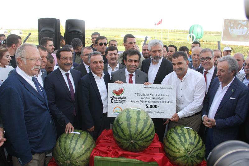 Yetiştirdiği 52 kg'lik karpuz ile birinci olan Adil Aydın'a ödülünü Vali Hasan Basri Güzeloğlu, 50.100 kg'lik karpuz ile ikinci olan Abdülhamit Atlı'nın ödülünü Diyarbakır Milletvekili Galip Ensarioğlu, 49.900 Kg'lik karpuzla üçüncü olan Mehmet Atlı'ya'a ödülünü Diyarbakır Milletvekili Ebubekir Bal Verdi.